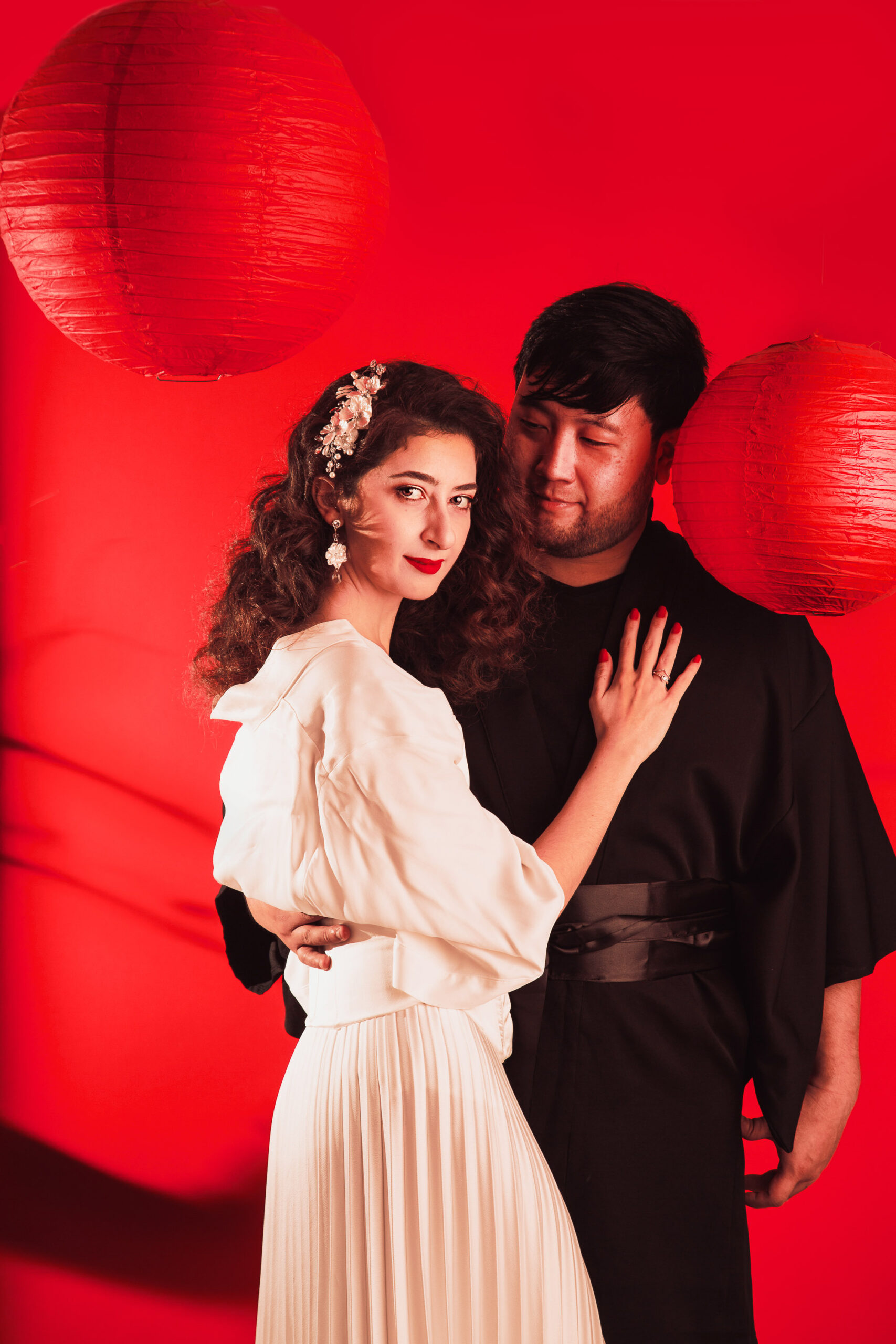 O casal Thaís e Felipe casaram em 2023, o tema foi o Japão. Para ilustrar esse encontro, fizemos um ensaio pré-wedding também no tema. A ideia era fugir de ensaios convencionais.